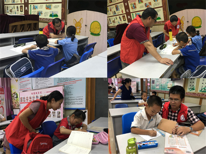 此次活动组织了我支部十余名教师党员志愿者参加,大家一走进学堂,就很快进入状态,纷纷为每一位需要帮助的小学生们“答疑解惑”,活动后大家都笑着说了句:对待这些小朋友们都比对待自己家的孩子更有耐心呢!