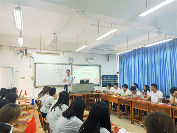 为了喜迎新中国盛世华诞70周年,厚植学生的爱国主义情怀,让爱国主义精神在学生心中牢牢扎根,2019年9月30日下午我校旅游系会展18A班精心组织策划和举办了一场爱国主义教育主题班会,学校党委副书记王育培作为该班的兼职班导师参加了活动全程。