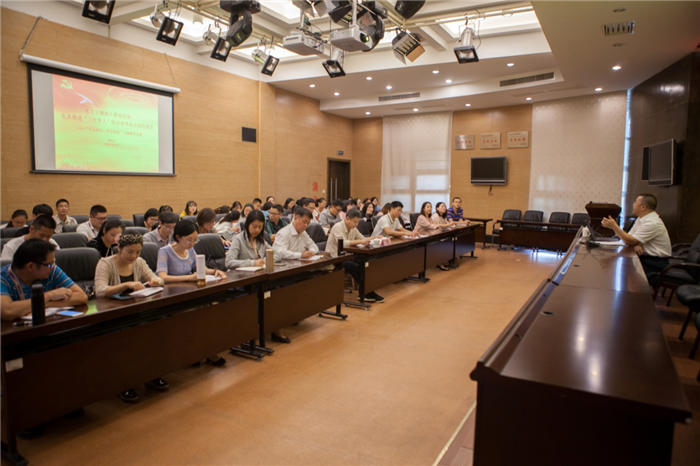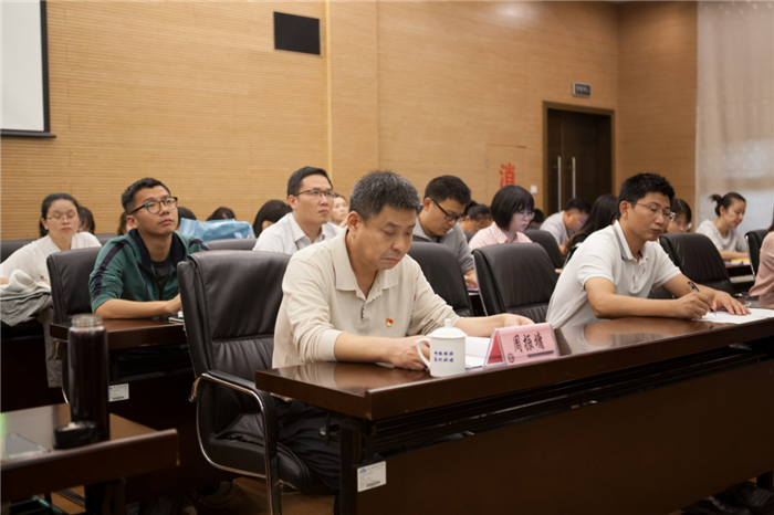 蒋先立从如何理解“坚守初心、勇担使命”,深入学习领会习近平总书记关于教育的重要论述的认识体会,扎实推进“三全育人”综合改革试点建设以践行初心使命这三个方面展开报告。