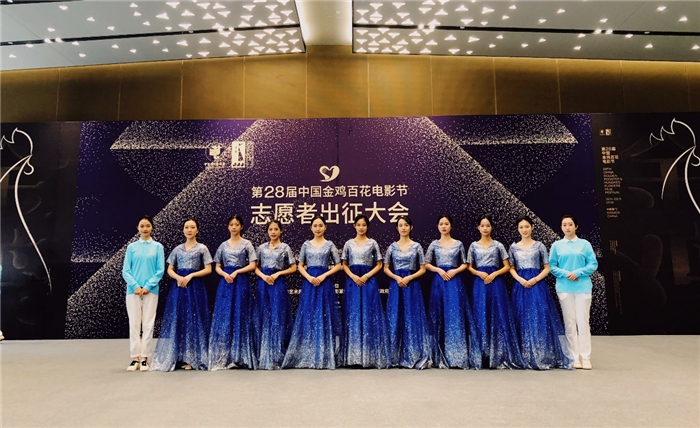 我校共有近400名同学报名参与本届金鸡百花电影节志愿服务活动。自第28届中国金鸡百花电影节志愿服务工作启动以来,执委会遵循“优中选优”的原则,通过线上报名、面试、心理测试等环节选拔招募,选拔出我校13名志愿者。根据电影节特点和安排,志愿者们开展了外语、礼仪等通识培训,以及各个具体岗位的专业培训。电影节期间,他们将在接待服务、开闭幕式、展映活动等多个岗位上,为莅临本届盛会的嘉宾提供志愿服务。