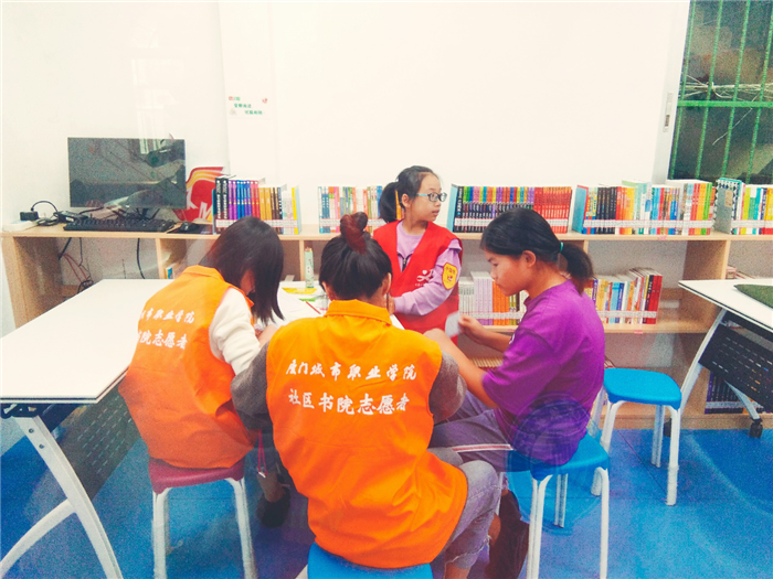 今年9月30日,思明区新厦门人图书馆正式开馆。开馆当天,同时成立了新厦门人图书馆志愿服务队,以我校青年志愿者为主导,成为我校社区书院志愿者服务团的小分队。志愿者们采取轮岗制,由校青年志愿者协会每周一统一发布招募信息,积极发动全校志愿者踊跃参与。志愿者们根据安排,每天在开馆时间内提供陪伴阅读、辅导课业、整理书籍等服务。