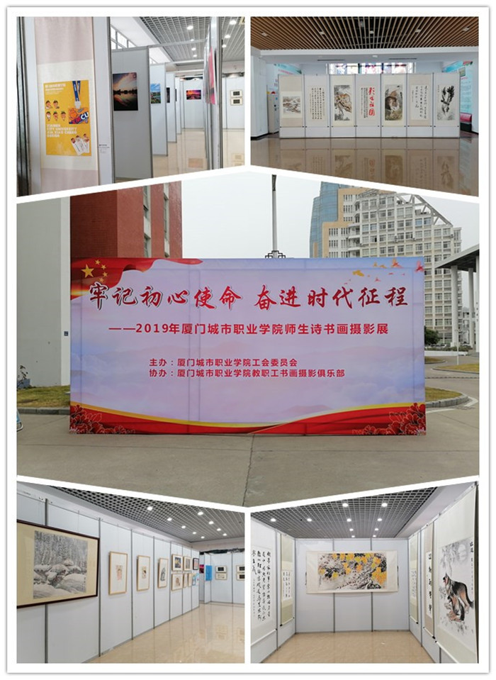 笔墨飘香书历史,光影吐彩映辉煌。为歌颂新中国成立70年的辉煌成就,深入推进“不忘初心、牢记使命”主题教育,同时展现广大师生昂扬向上的精神面貌,进一步推进校园文化建设,由学校工会主办、教职工书画摄影俱乐部协办的“牢记初心使命、奋进时代征程”师生诗书画摄影展于12月18日在学院图书馆正式开幕。