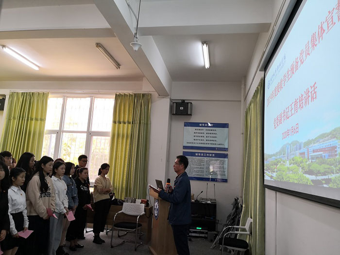 1月6日上午,我校2019年新吸收学生预备党员入党宣誓仪式在南校区敬业楼101党员活动室举行。