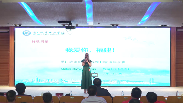 音乐曲艺类,我校参赛歌曲《我和你》由国际生妮娅(俄罗斯)、玉石(巴西)、玛丽、拉达(白俄罗斯)共同演绎,由何璇老师指导。歌曲中有浓郁的中华符号,彰显了以人为本、和谐发展的理念,经国际生的演绎更赋予了歌曲大爱精神和国际色彩;汉语语言类的诗歌《我爱你,福建!》由我校国际生玛丽同学朗诵,杜迎洁老师指导,面对其它高校选派的11名华裔选手,她仍以儒雅端庄的气质、流利的汉语、精彩的诗词内涵征服了评委,斩获佳绩。同时,我校还荣获优秀组织奖。