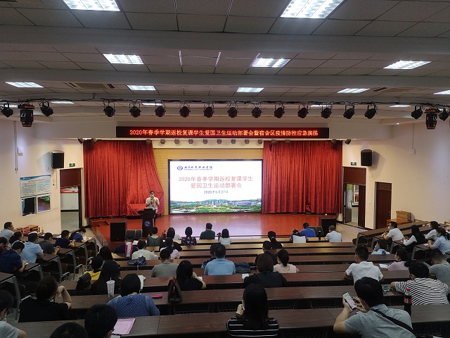 5月27日下午,我校举行返校复学学生爱国卫生运动部署会暨宿舍区疫情防控应急演练。校党委副书记王育培,全体学工干部,办公室、后勤相关人员参加会议。会议由学工处处长陈小明主持。