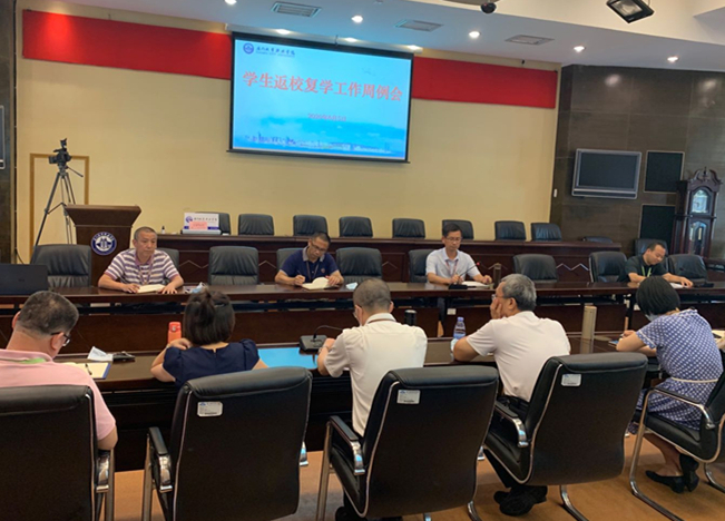 会上,学生工作处、办公室、保卫处和后勤管理处等部门领导就第三批学生返校后的封闭管理、宿舍管理、用餐安排、健康管理和思想教育等工作进行了交流汇报,认真分析了存在的困难与不足,特别就严格落实学生每日早午晚体温检测制度、规范做好返校生的健康台帐以及如何加强学生的安全教育和心理疏导工作提出了改进思路。