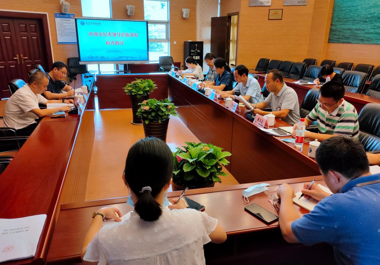 8月7日上午,市纪委第五纪检监察室副主任张康雪、市教育纪检监察工委副书记陈郁东对我校2020年招生录取工作进行检查指导。副校长吴松青、校纪委书记陈桂兰出席会议,纪检监察室、学生工作处、招生办、教务处、开放教育部与继续教育中心等部门负责人和相关人员参加会议。
