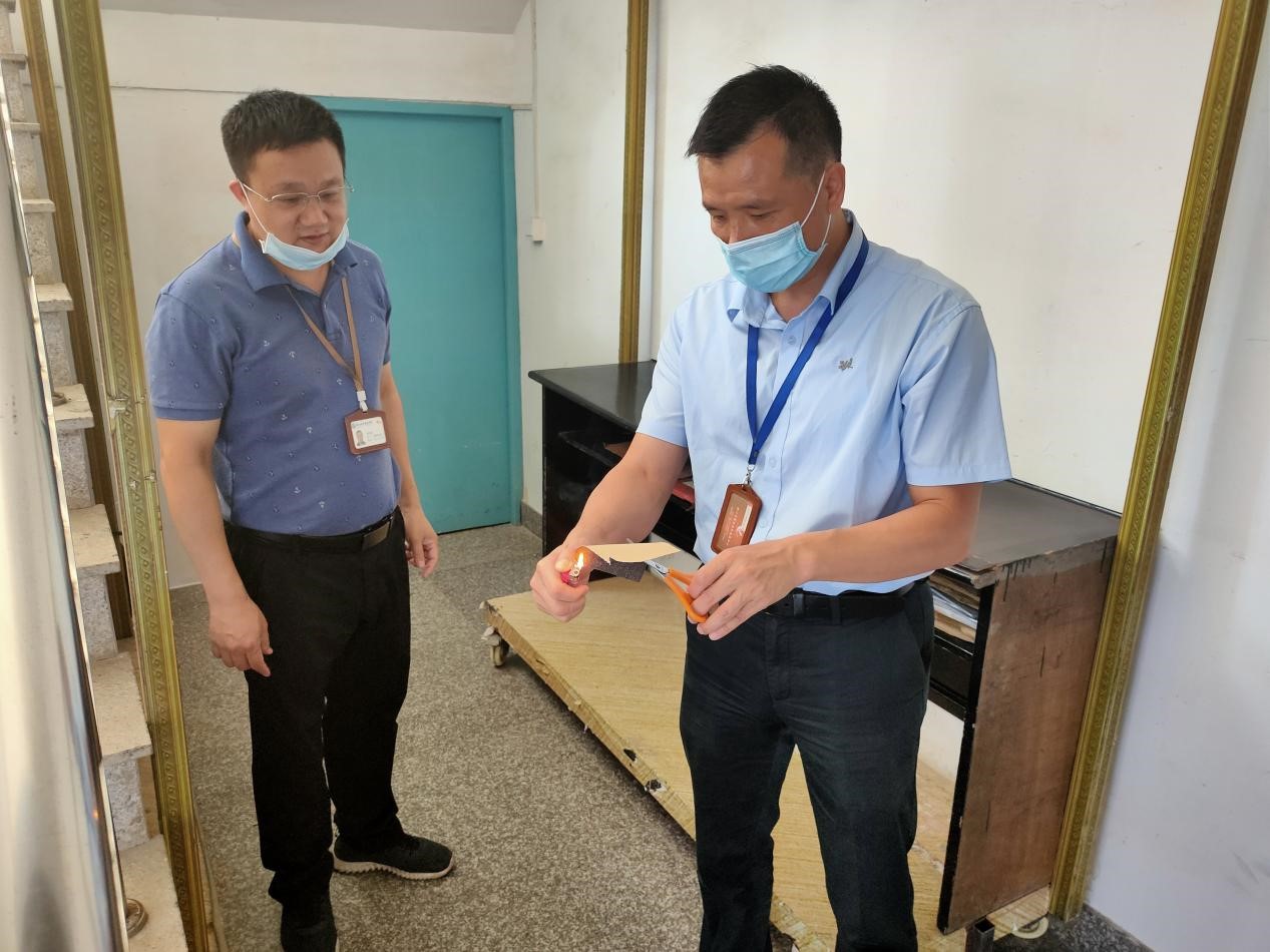 下午,市监委留置点监管组副组长蒋贵临和市纪委五室干部高雄对我校谈话室的安全建设情况进行复查,对谈话室防火材料进行检测并细节处给予一一指导,要求时刻绷紧安全“弦”。