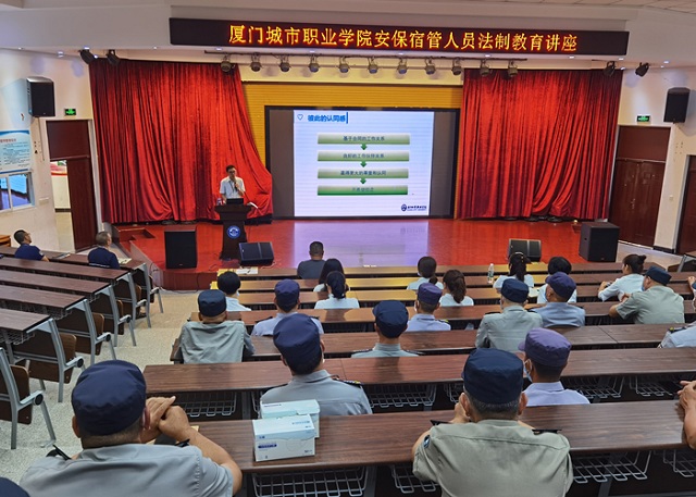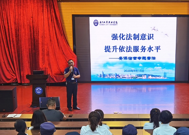 9月15日下午,保卫处会同学生工作处组织了一场由安保、宿管人员参加的法制教育讲座。讲座由法务室林艺立老师主讲、保卫处处长刘和友主持,副校长王福龙、保卫处以及学工处老师参加了本次讲座。