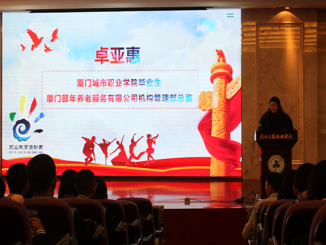 11月12日上午,我校优秀毕业生卓亚惠作为报告团成员参加了厦门市教育局组织的“厦门市2020年职业教育就业创业优秀人才专题报告会”。本次报告会是厦门市职业教育活动周的活动之一。通过挑选在各行业做出突出成就、在就业创业方面取得一定成效,有一定职业教育榜样示范和带动作用的优秀毕业生组成报告团开展宣讲。
