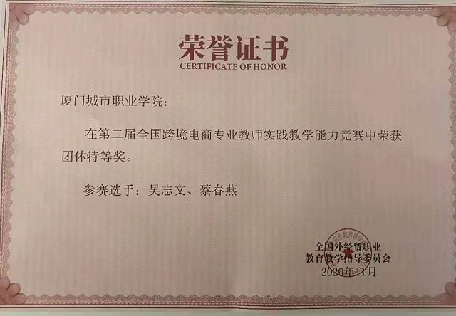 我校国际职业教育学院商务英语专业吴志文和蔡春燕老师组队参加,在三天比赛期间,两位老师克服种种困难顽强拼搏,经过激烈角逐,获得全国赛团体特等奖。