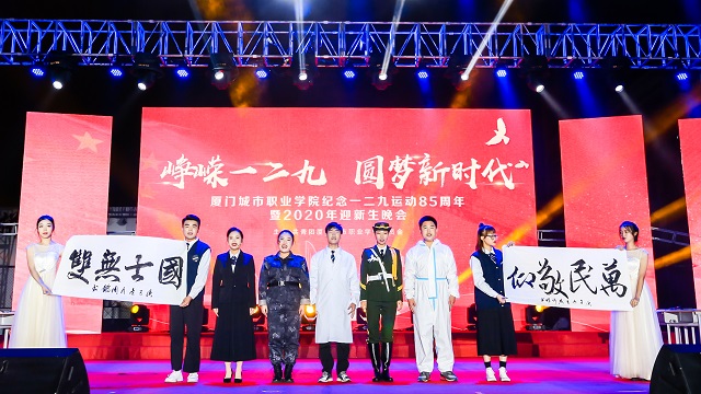 12月9日晚,由校团委主办的“峥嵘一二九·圆梦新时代”纪念“一二·九”运动85周年暨2020年迎新生晚会在南校区操场成功举办。校长唐宁、党委副书记王育培、副校长吴松青、纪委书记陈桂兰、副校长王福龙,有关部门、二级院系领导和辅导员、班导师与2020级全体新生共同观看了晚会。