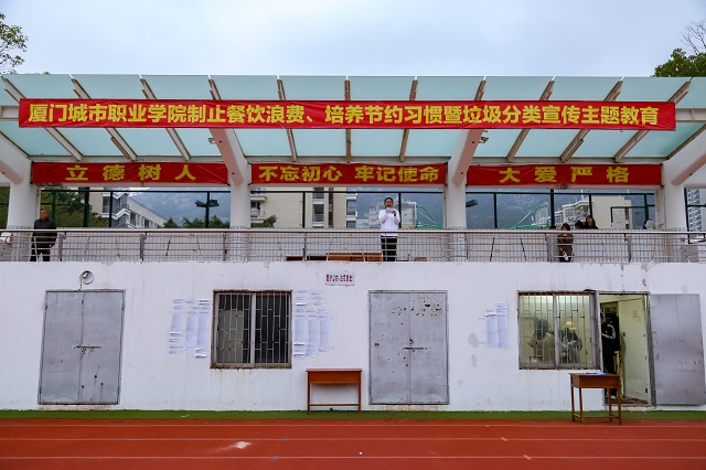 按照厦门市关于校园生活垃圾分类的相关要求和学校关于垃圾分类工作的重要部署,本次“国旗下讲话”活动在第三环节开展垃圾分类宣传主题教育。学生工作处宿舍管理中心负责人黄福利针对垃圾分类的意义、标准进行了详细阐述,倡议全校师生从自身做起,在学习、生活中做垃圾分类的倡导者、参与者和宣传者,并遵循源头减量,做到纸张双面书写、学习用品物尽其用,减少垃圾的产生。后期,学校将进一步开展学生宿舍区垃圾分类管理与教育督导工作,也会开展形式多样的系列宣教活动,规范投放行为,让垃圾分类逐步成为学生的意识习惯。
