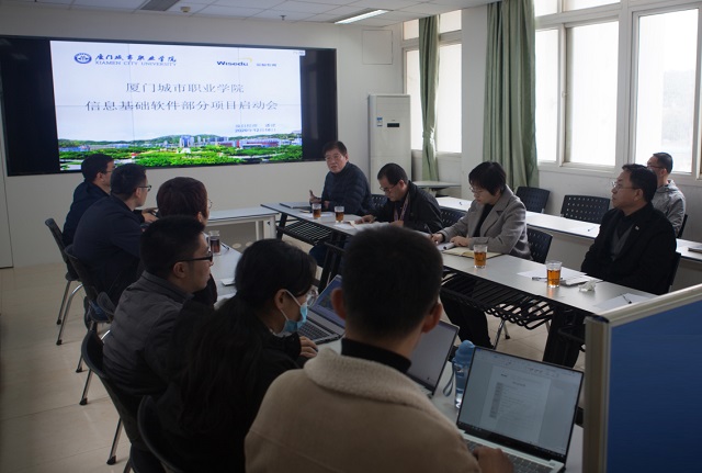 12月18日下午,学校在云顶楼信息中心召开年度信息化项目建设启动会。副校长陈旭辉、信息中心主任徐锡健、副主任池玉婷、杨文勇、业务相关人员、项目中标方江苏金智教育信息股份有限公司副总经理周平、项目经理潘建、项目组成员及厦门东晟信息工程监理有限公司工程师康平福参加此次会议。启动会由陈旭辉主持。