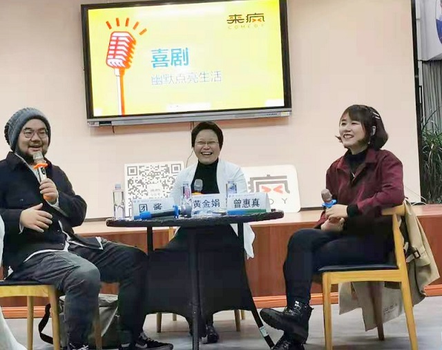 12月23日下午,第八期“创客厦小城”创新创业服务沙龙以“人人都需要一堂即兴表演课”为主题成功举办。沙龙邀请了来疯喜剧即兴喜剧板块负责人曾惠真,脱口秀板块负责人师团酱担任主讲嘉宾,沙龙由省人社厅创业导师、厦门育华企管咨询有限公司首席讲师黄金娟主持。50多位学生参加了本次活动。