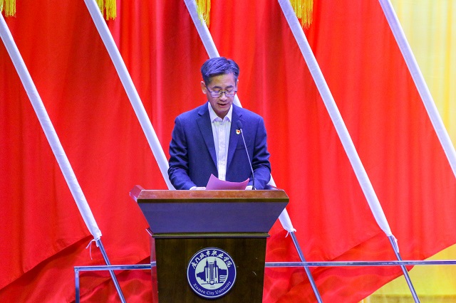 大会在庄严的国歌声中拉开序幕。王育培在致辞中向大会召开表示热烈祝贺,向团市委和市学联表示衷心感谢,并向全校广大学生致以亲切的问候。他指出,第九次学生代表大会,是我校青年学生政治生活中一件大事。这次大会是在全校师生认真学习贯彻党的十九届五中全会精神,全面谋划学校事业发展“十四五”规划之际召开的一次盛会,对全面贯彻落实高校共青团改革和学生会改革必将起到积极的推动作用。王育培充分肯定了第八届学生会在过去一年里取得的成绩,对学生会在校党委的领导和校团委的指导下开展的青年思想引领、校园文化建设、社会实践与志愿服务的特色工作和品牌活动表示赞许,并向与会代表和全校学生提出三点希望:一是希望广大同学坚定信念,奋发成才,争当时代新人;二是希望全校各级学生组织勇于实践、开拓创新,打造优秀团队和坚强壁垒;三是希望全校学生干部改善作风,廉洁自律,勇做带头先锋。