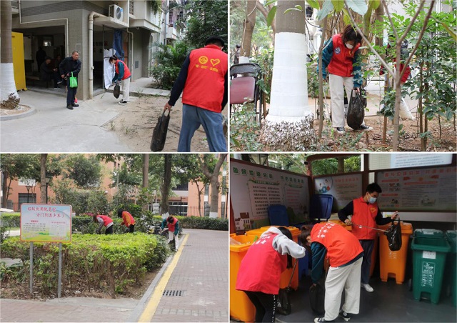 为更好地保持文明城市创建成果,营造优美整洁的环境,师生志愿者与区妇联和社区工作人员拿着清洁工具走进万景公寓小区清理道路旁、草坪里的杂草、垃圾,捡起地面和草丛里的烟头。志愿者们专心致志地打扫卫生,不放过任何一个卫生死角,并把捡到的垃圾进行了分类投放到分类垃圾桶。志愿者们通过行动呼吁和带动更多的居民参与家园美丽的创建中,做好净化家园“守护者”。