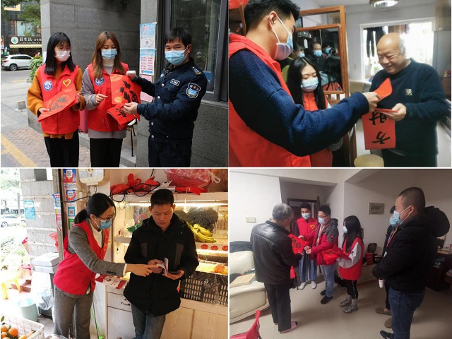 志愿者们还将事先书写好的“福”字和春联送进千家万户,深入居民家中。利用万景公寓人员情况复杂和居民知识不高的特点,在送“福”字进家门的同时,宣传安全防范知识和预防措施等法律法规,进一步提升居民防范意识和能力,赢得了广大群众好评。期间,发放福字和春联近百份,增强了居民安全意识和主动参与意识,当好人民群众“宣传员”。