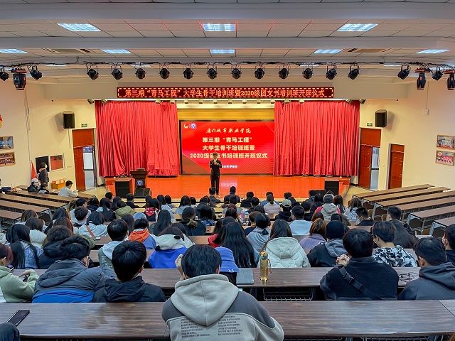 1月8日下午,我校第三期“青马工程”大学生骨干培训班暨2020级团支书培训班开班仪式在大学生文化艺术中心举行。校党委副书记王育培出席开班仪式并做专题报告,校团委书记黄超和百余名培训班学员代表参加活动。