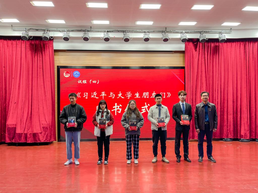 黄超作为第三期“青马工程”大学生骨干培训班班主任,宣读学员名单,为培训班授予旗帜,并对全体学员提出了三点要求:一是要深化理论学习,坚定理想信念;二是要加强实践锻炼,提升综合素质;三是要紧密联系同学,提高服务意识。学员代表施培鸿作了表态性发言,向全体学员发出“志存高远,坚定理想信念;勤奋学习,练就过硬本领;率先垂范,勇做旗帜标杆”的倡议。本次开班仪式还进行了赠书环节,王育培向学员代表们赠送了《习近平与大学生朋友们》一书。