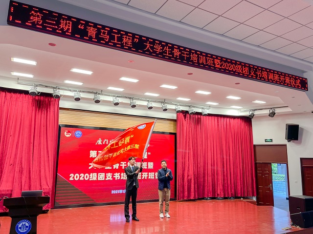 为第三期“青马工程”大学生骨干培训班授予旗帜