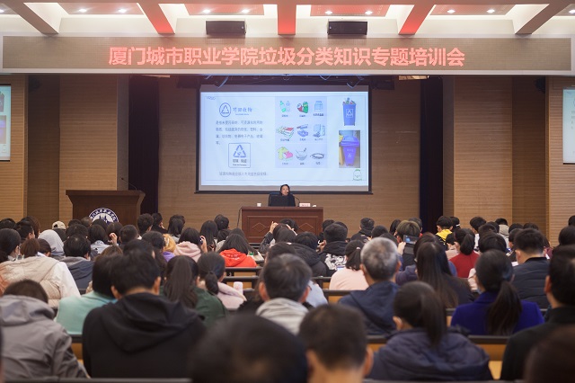 2020年12月,经副校长王福龙带队调研,校长唐宁主持召开垃圾分类工作推进协调会,形成了由后勤管理处牵头,办公室、教务处、学生工作处、组织人事处、团委和九个党总支配合的《厦门城市职业学院生活垃圾分类提升行动工作实施方案》并报党委会研究通过。12月始,通过校园广播、微信公众号、宣传栏、电子屏幕等媒介,对垃圾分类工作进行全面广泛宣传;12月16日学校邀请厦门垃圾分类中心讲师邹玉莲对全校师生开展垃圾分类知识专题培训会,进一步提升全体师生员工的生态文明和生活垃圾分类意识;同时学校组建了由学生志愿者、教职工和物业人员联合的三级检查督导队伍,通过每日排班,对学校南北校区4个垃圾投放点的垃圾分类精准投放情况进行检查,其中教职工参与约750人次,学生参与约900人次,物业参与约820人次,进一步提高师生垃圾分类的自觉性和准确性。通过为期一个月的宣传教育和督导,我校宿舍区和公共区域的其他垃圾减少20.1吨,可回收垃圾增加5.28吨,厨余垃圾增加15吨。