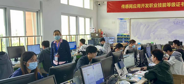 为认真贯彻教育部《国家职业教育改革实施方案》的文件精神,稳步推进“1+X”传感网应用开发职业技能等级证书试点工作。电子与信息工程系物联网应用技术专业在2020年11月首次组织物联网18A学生共30人,参加“1+X”传感网应用开发职业技能等级证书的考试,其中21名同学通过了本次的考试,通过率为70%,远高于全国平均通过率(45.48%),在福建省考核人数30人以上的考点中排名第1。