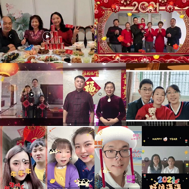 通过微视频、照片、文字等方式,老师们或携家人在镜头里向大家拜年,搭配着大红灯笼、中国结、新春祝福语,别有一番喜庆。或展示传统书法,书写即将张贴的春联,红红的福字,别有一番新意。或展示丰盛的年夜饭,隔着屏幕都能让人感受到香气扑鼻的味道,别有一番风味。或让孩子们尽情表演舞蹈、歌曲、陶笛等等,精彩才艺美不胜收,别有一番风采。或展示“留厦过年”的美丽景致,湛蓝的大海,热闹的街道,璀璨的焰火,别有一番风景……