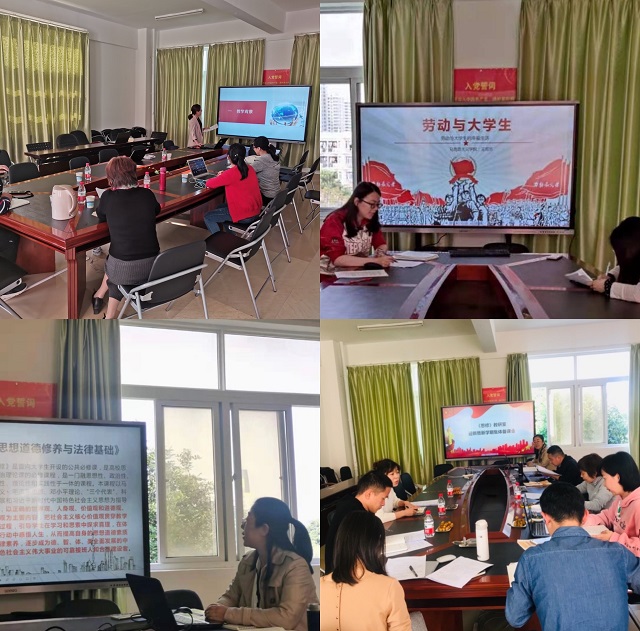 为贯彻落实习近平总书记在思政课教师座谈会上的讲话精神和《新时代高校思想政治理论课教学工作基本要求》《新时代学校思想政治理论课改革创新实施方案》等文件精神,提高思政课教师的教学质量和水平,深化思政课教学改革创新,突出思政课在落实学校立德树人根本任务中的关键地位和作用,2021年3月起,毛泽东思想和中国特色社会主义理论体系概论、思想道德修养与法律基础、形势与政策、劳动教育、“四史”教育等教研室,纷纷举行新学期的集体备课会。马克思主义学院领导参与各教研室备课会,保障备课会的质量和效果。