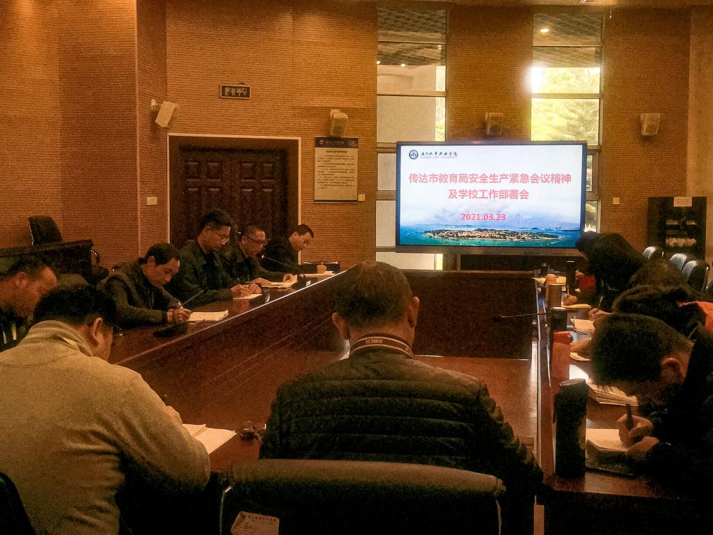 3月23日下午,我校召开安全隐患排查整治专题工作部署会议,党委副书记王育培、副校长吴松青、副校长王福龙,办公室、组织人事处、教务处、学生工作处、后勤管理处、保卫处等部门负责人,各院系党总支负责人参加会议。王福龙主持会议。