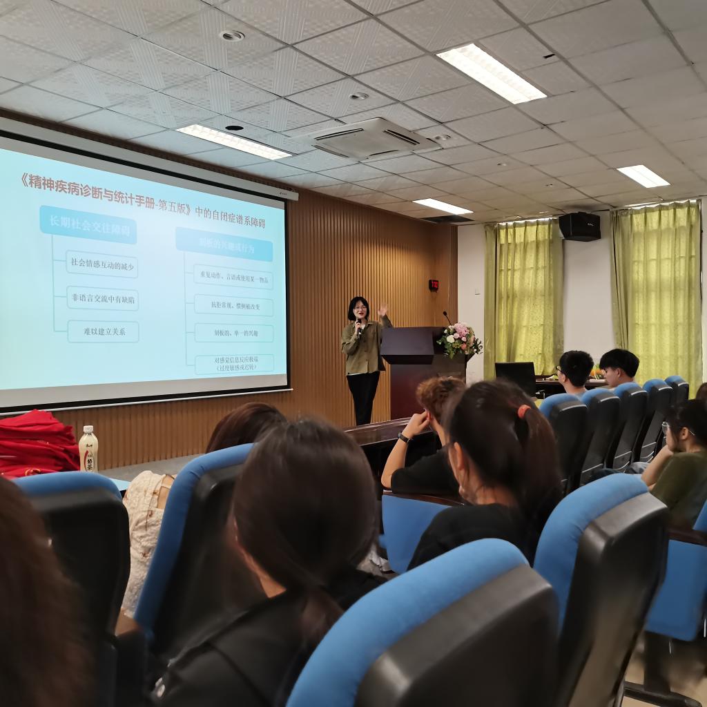 三月份,我校心理健康与咨询中心对志愿者们开展了线上理论培训。4月1日,以“大学生志愿服务与自闭症儿童”为主题的线下志愿者培训活动于南校区115室举行。此次讲座邀请了有丰富志愿服务经验的厦门大学社会工作专业研究生赵广赢同学做实践经验交流与分享。她向志愿者们系统传授了有关自闭症的基本常识和引导技巧,帮助大家理解、接纳生命的多样性和增强社会责任感。