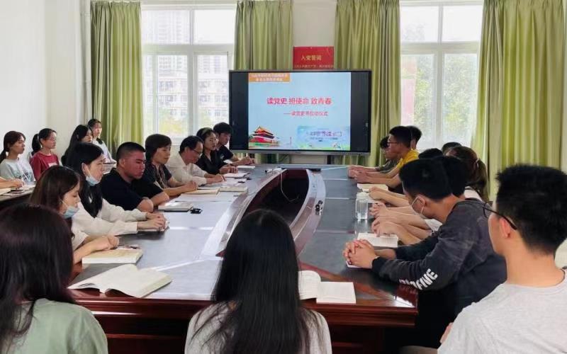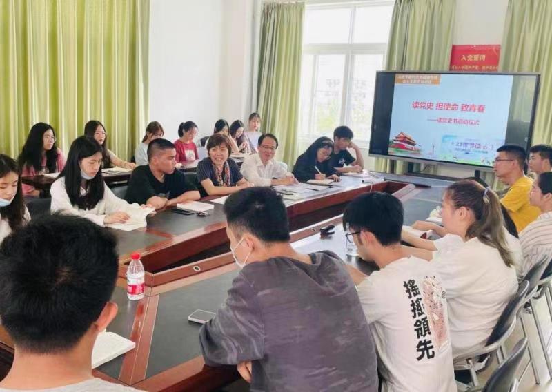 读书社指导老师吴细玲和林明治也参加了此次活动。吴老师指出,“历史是最好的教科书,党史是青年学生健康成长的必修课,青年学生要读好党史书,勇担新使命,从党史学习中汲取奋进的力量。”林明治老师则结合自身成长经历,与同学生们分享了“新时代,我们为什么要读党史书?怎样读好党史书?”之后,同学们畅所欲言,围绕着读什么书、如何读书表达了自己的感悟。同学们纷纷表示要充分利用在校期间多阅读多交流,多学习革命英烈事迹,感悟伟大历史成就,自觉传承红色基因,让书中的知识和精神内化于心、外化于行,以优异的成绩迎接建党百年。
