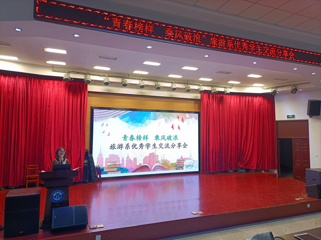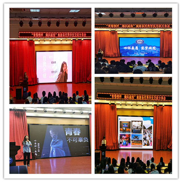 精心遴选的4个优秀学生用朴实、真挚、生动的语言,讲述了进入大学以来经受的磨练、收获和对未来的无限憧憬。学校首部微电影《梦想从未走远》的女主角叶春婷同学以“青春不可辜负”为题,告诉学弟学妹们要加强学习,不放过任何一个成长的机会。福建省高职院校技能大赛导游服务赛项一等奖获得者胡观婷同学以“只争朝夕,不负韶华”为题,告诉学弟学妹们要学会勇敢,勇敢迈出第一步,挑战不可能,坚持不懈,把不可能变成可能。校艺术团团长、国家励志奖学金获得者罗小勤同学以“青春真美”为题,告诉学弟学妹们要勇于追梦,做好规划,及时反思,坚定目标,努力前行,做一个高效的时间管理者。国家奖学金、厦门市凤凰会展奖学金获得者、“最美学生”李炳瑚同学围绕三个关键词——试错、感恩、坚持,用自己的真实故事倾情讲述了“奋斗的青春最美丽”。分享会结束后,青春榜样们还一一解答了学弟学妹们关心、疑惑、迷茫的问题。最后,旅游系党总支副书记林嘉熹老师作总结发言,她向青春榜样们表示祝贺,同时高度赞扬她们身上自强不息、坚韧执着、心怀感恩、笃实力行、匠心筑梦的个性品质,并号召广大学生树立远大志向,学会珍惜、学会感激、勇于挑战,敢于追梦,以报告者为榜样,学习她们的经验和方法,以奋进为蓝图底色,用奋斗标注青春,努力成为有理想、有责任、有担当、有才干的当代大学生。