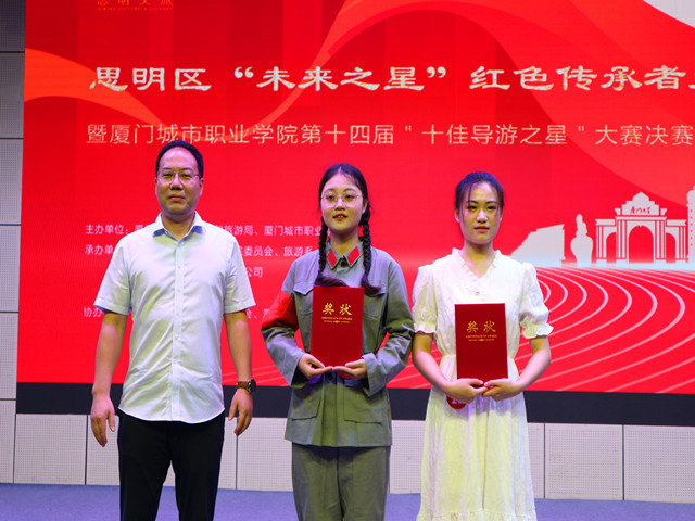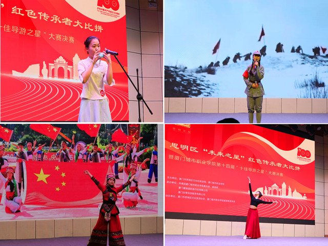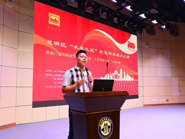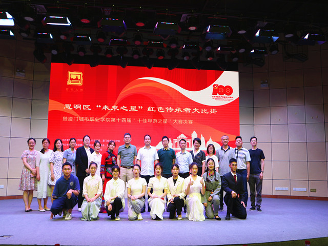 为了深入开展党史学习教育,庆祝“5.19中国旅游日”,同时进一步加强思明区旅游人才队伍建设,积极探索旅游后备人才培训和选拔的新模式,激发城院学生的爱国、爱党情怀,争当红色文化传承人和传播者。5月19日,思明区“未来之星”红色传承者大比拼暨厦门城市职业学院第十四届“十佳导游之星”大赛在厦门城市职业学院大演播厅举办。