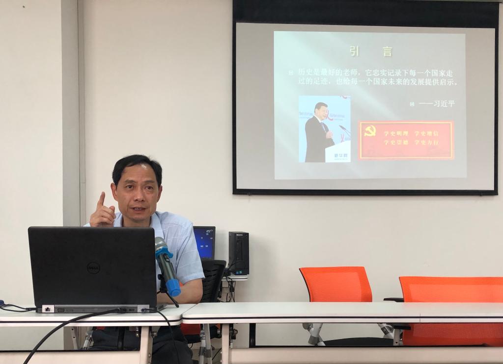 吴松青副校长结合党史学习教育,围绕中国共产党为什么“能”、马克思主义为什么“行”、中国特色社会主义为什么“好”这三个问题,指出“学党史、悟思想”最终要体现到“办实事、开新局”上。吴松青副校长从新中国职业教育改革发展历程的回顾中,分析了职业教育高质量发展的现实需要和职业教育实现高质量发展的条件,他指出,必须加强党对教育工作的全面领导,全面落实立德树人根本任务,加快建设高质量教育体系,全面提升教育服务贡献能力,加快推进教育治理体系和治理能力现代化,从而实现职业教育高质量发展。