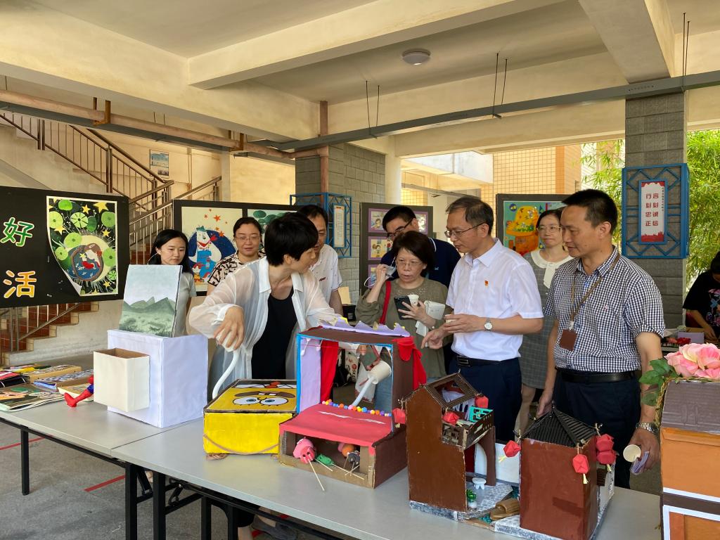 吴松青副校长观看学生手工作品