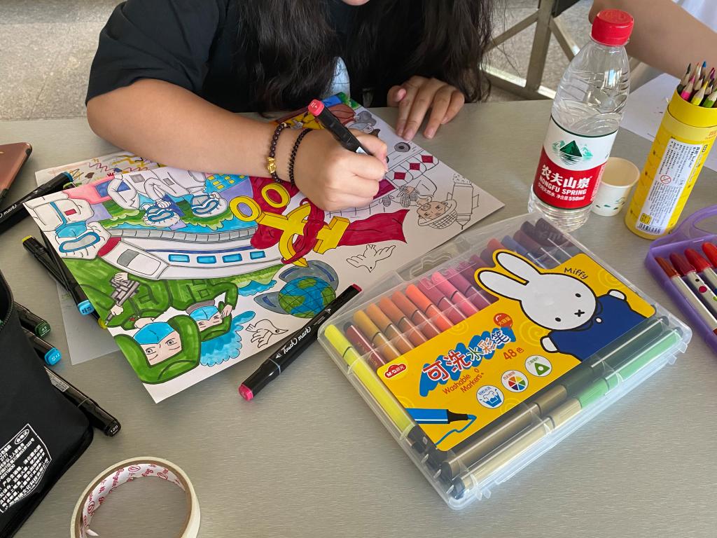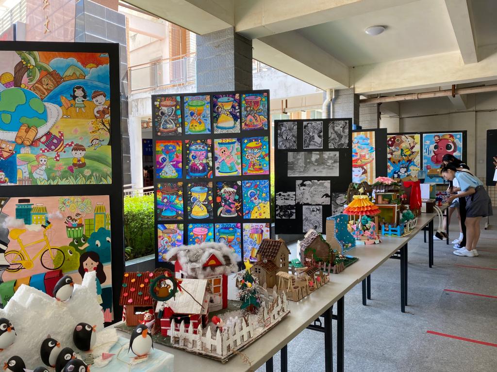 活动现场,展出一批学前教育专业学生绘画作品与手工作品。作品种类丰富多样,包括精致美观的美术材料画、简笔画和手绘绘本,栩栩如生的纸雕作品、布艺作品,以及新奇的废旧物利用作品和益智玩教具作品等,作品展现了学前教育专业学生的艺术才华与职业技能。在董云霞、李雅玲两位老师的指导下,2019级学前教育专业多名学生围绕"爱党,爱祖国"、"爱生活,爱厦门"、"美化生活,保护环境","医食无忧"以及"致敬抗疫精神"等主题,进行即兴创作,展示教育与民生学院师生良好的技能水平和精神风貌。