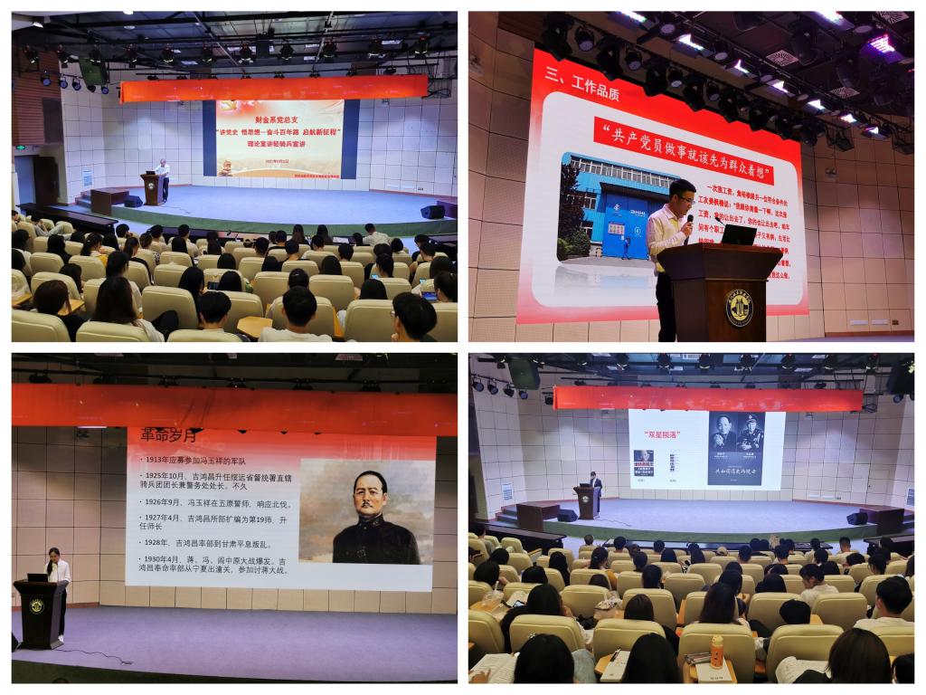 中共预备党员、财金系金管19A班长、团支书于梦真同学通过《学习鸿昌精神传承红色基因》主题宣讲,给大家介绍来自她家乡的爱国将领、抗日英雄吉鸿昌的红色故事。吉鸿昌将军被评为100位为新中国成立作出突出贡献的英雄模范之一,列入民政部公布的第一批300名著名抗日英烈和英雄群体名录。她鼓励同学们要认真学习吉鸿昌将军“为民、务实、清廉、爱国、英勇”的革命精神,不忘初心、牢记使命。