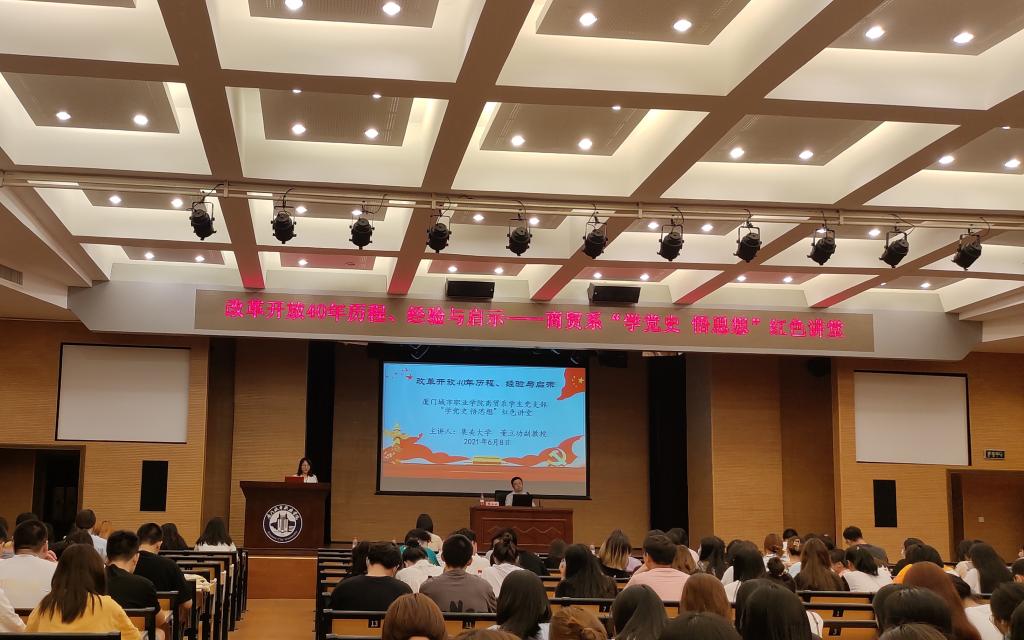 2021年6月8日晚,集美大学副教授董立功应邀莅临我校为商贸系师生作题为《改革开放40年历程、经验与启示》的专题讲座。