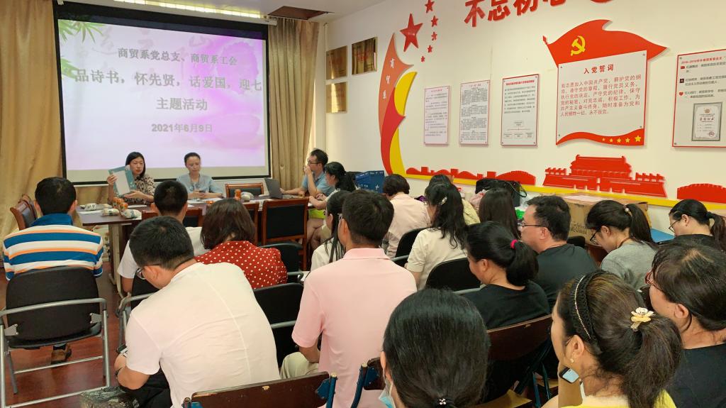 在端午节来临之际,商贸系党总支、商贸系工会突出节日文化内涵,聚焦“永远跟党走”主题,深化“我们的节日”活动,于6月9日开展“品诗书,怀先贤,话爱国,迎七一”主题活动。