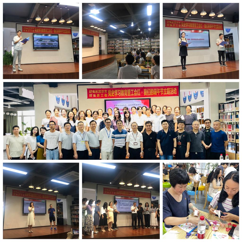 在中华民族传统佳节端午节即将到来之际,财金系党总支、财金系工会在南校区创新创业学院一楼路演厅组织开展了党史学习教育暨工会红·我们的端午节主题活动。