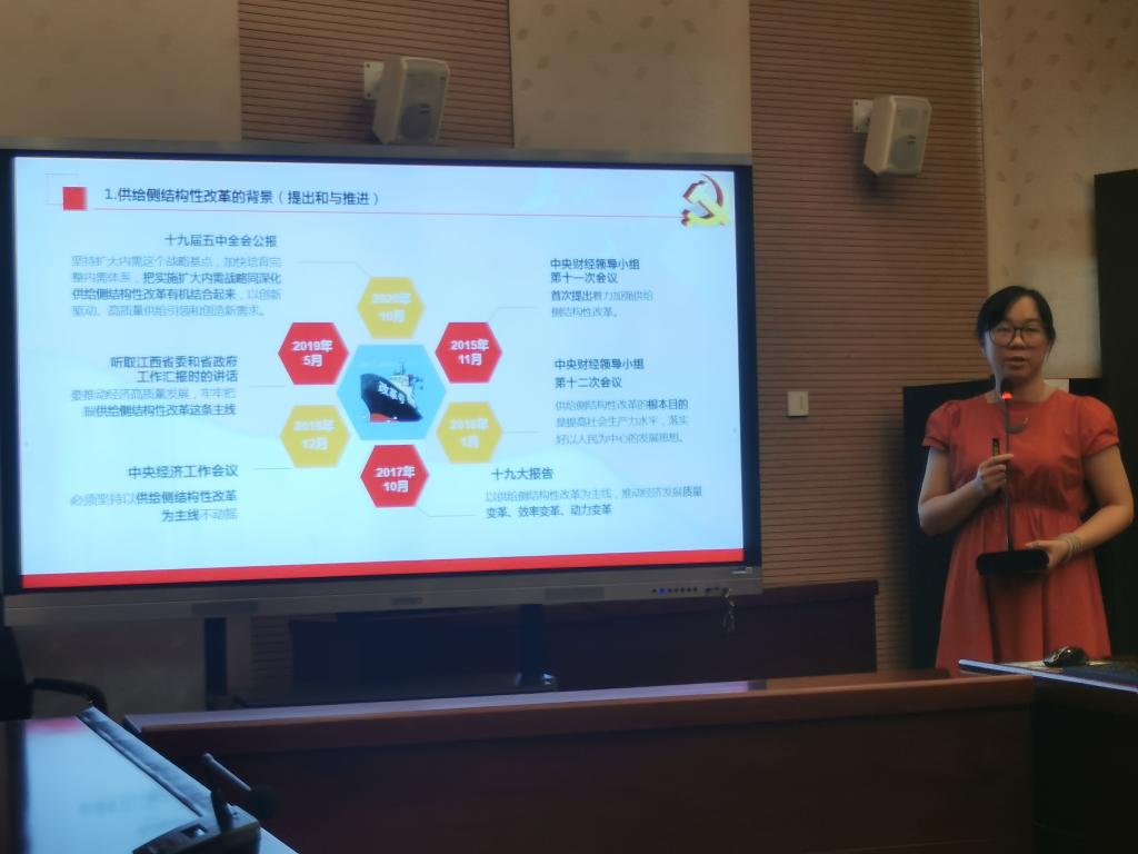 杨宓老师以《供给侧结构性改革的背景和内涵》为题,通过犀牛智造等案例深入浅出地介绍了供给侧结构性改革的背景、内涵及其意义。课上,杨老师还以在甘肃参观的亲历,深情讲述了罗云鹏烈士慷慨就义及其女儿罗力立在狱中的革命往事。罗云鹏1938年担任中共甘肃工委副书记,在极其艰难的条件下,领导甘肃的地下党组织,广泛开展抗日救亡运动。1940年6月因叛徒出卖,连同其妻子樊桂英和出生仅8个月的女儿罗力立一同被捕入狱,在狱中,罗云鹏惨遭严刑、备受折磨,但是他没有忘记党的任务,毅然组织革命战友与敌人进行坚贞不屈的英勇斗争,直到1946年2月22日,被敌人杀害。