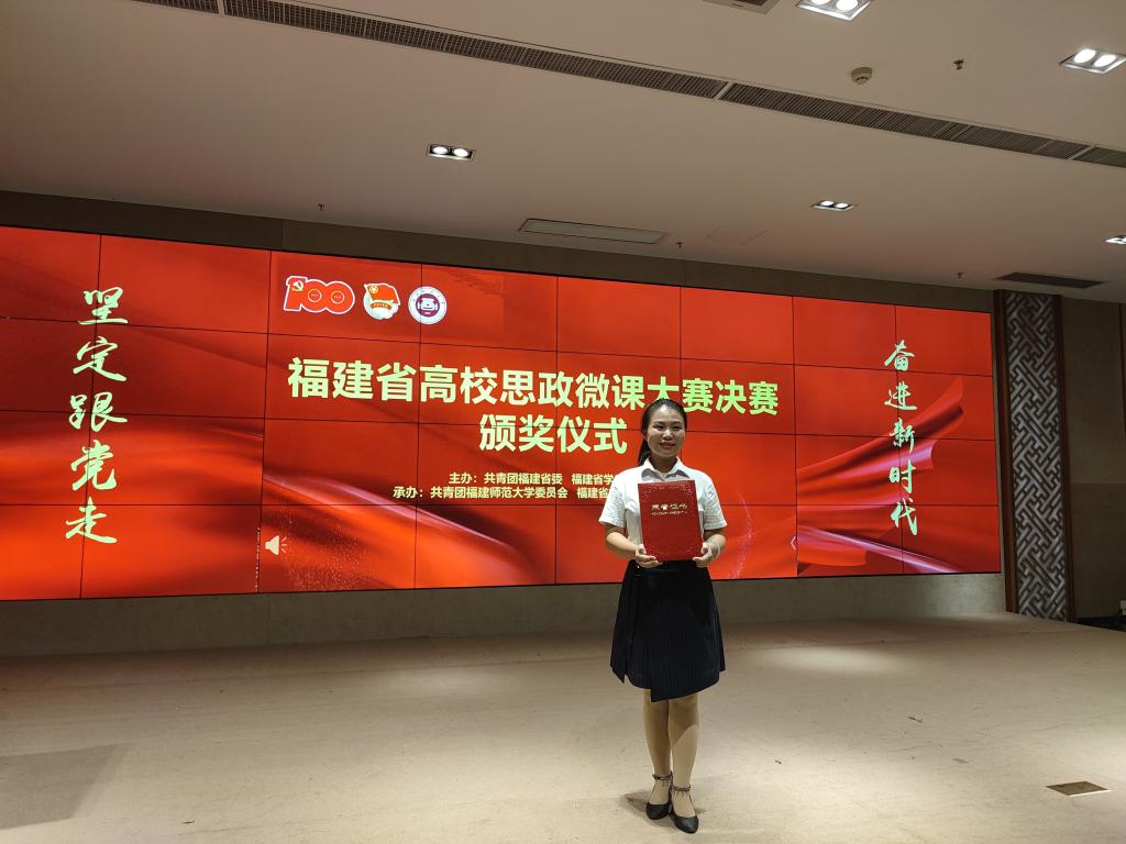 6月20日下午,“坚定跟党走,奋进新时代”福建省高校思政微课大赛决赛在福建师范大学旗山校区落下帷幕。我校机械与自动化工程系团总支负责人涂晓婷的思政微课《“自找苦吃”当好新时代的“答卷人”》荣获大赛一等奖。