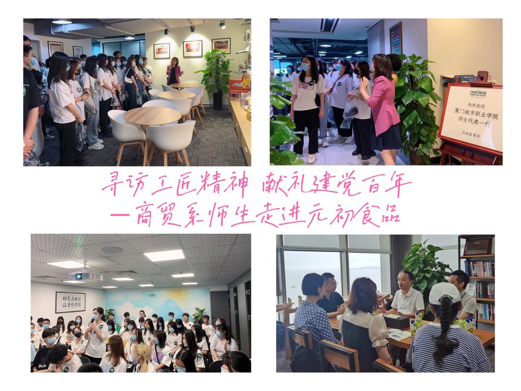 6月24日,来自厦门城市职业学院市场营销、电子商务等专业共40多位同学走访了厦门知名连锁企业“元初食品”的企业总部。校学生工作处就业指导中心全体教师与商贸系党总支学工团队也参加了此次活动。商贸系党总支副书记宋凌云、学生工作处副处长周宇哲、商贸系市场营销专业学科带头人郑彦以及就业指导中心洪秋燕与元初副总裁高仕钦深入交流。
