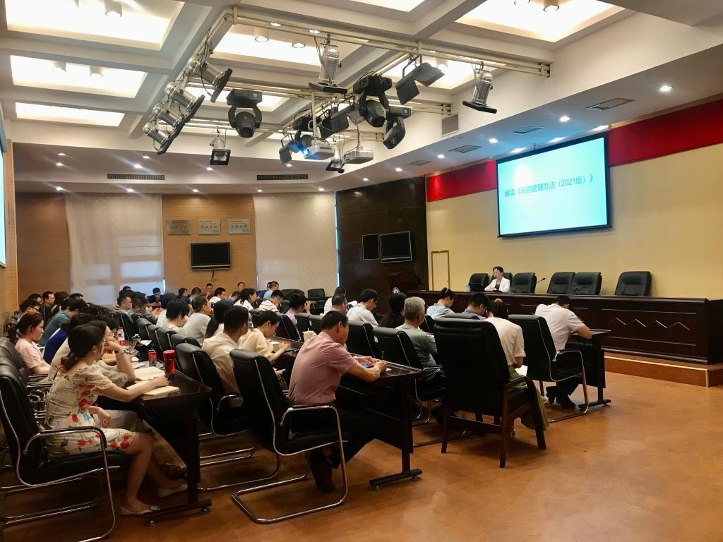 7月7日下午,后勤管理处采购办在会议二组织二级部门开展采购工作培训会,各部门负责人、采购员和相关项目老师参加此次会议,会议由副校长王福龙主持。