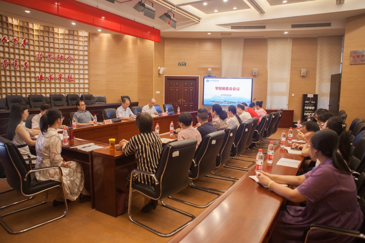 会上,李珊编委代为传达《中共中央宣传部教育部科技部印发<关于推动学术期刊繁荣发展的意见>的通知》精神。学报编辑部向编委会作2021年上半年办刊情况和下阶段主要工作汇报,并宣读学报“三审三校”审校流程和编委会委员职责。编委会委员针对通知精神、办刊情况、流程优化与学报发展等问题展开讨论,建言献策。
