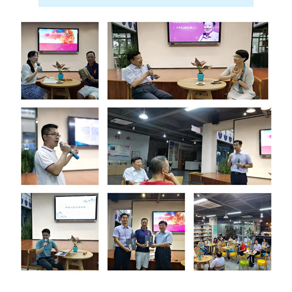 小暑节气前夕,云顶悦读社举办了第二期悦读分享会,本期悦读分享会邀请到了我校退休教授、知名作家沈世豪作客悦读会,与书友们分享了他的“书“之缘,读书会在李玉芬老师与叶少军老师的精彩诵读中拉开序幕;接着沈老畅谈了他在教书、著书、读书中的奇缘、逸事,在教学中,注重理实一体让学生在写作中成长成名;著书中,几十年如一日地笔耕不止,著作等身,佳作频出;介绍了他是如何读书,用有效的读书反哺写作的;访谈环节,沈老向书友们签赠《作家沈世豪》一书;王育培副书记回忆了与沈老共事时的点滴往事,点赞沈老为人为学德艺双馨,值得大家学习;随后罗春垣老师与丘少春老师分别作了《古体诗创作与吟诵》《中国人的文化乡愁》的主题分享,书友们在一杯茶、一本书,一个美好的小时光中共享悦读的快乐。