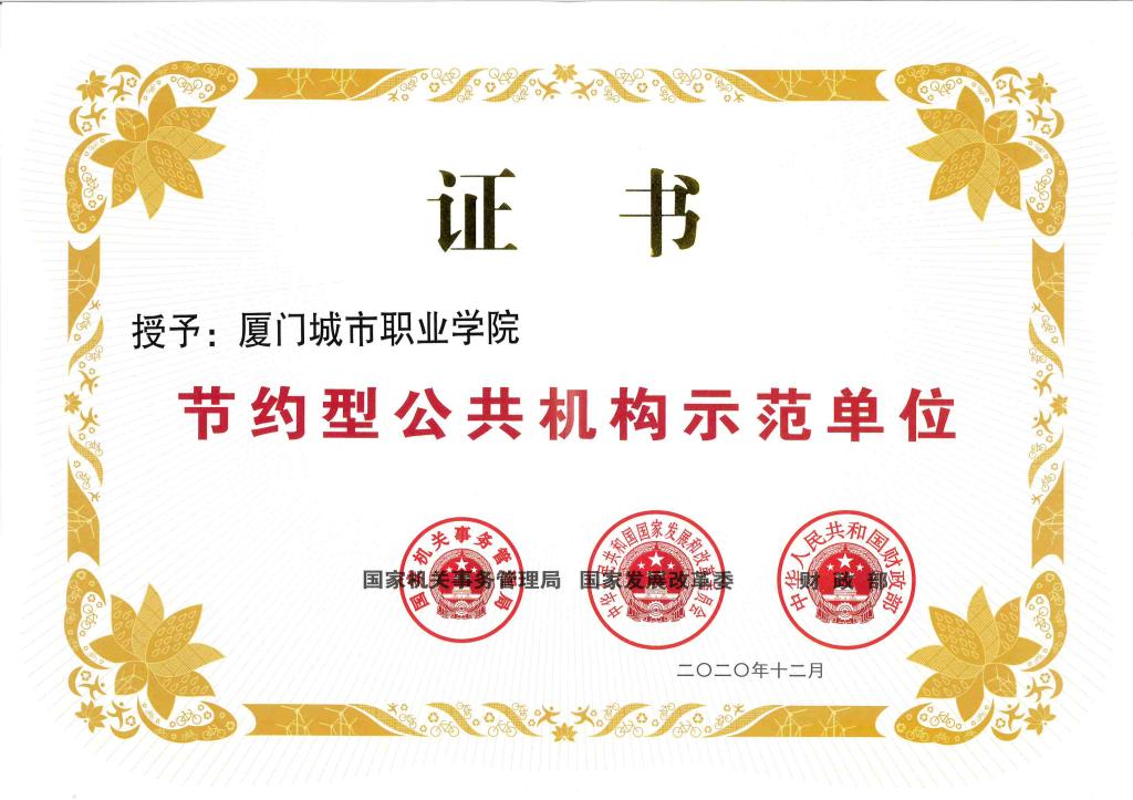 节约型公共机构示范单位证书