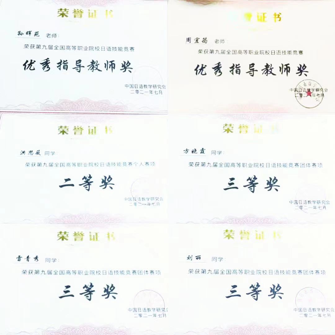 暑假期间,第九届全国高等职业院校日语技能大赛在安徽外国语学院举办。在本次比赛中,我校商务日语专业参赛团队荣获团体三等奖,我校2019级日语专业洪思薇同学获个人二等奖,。