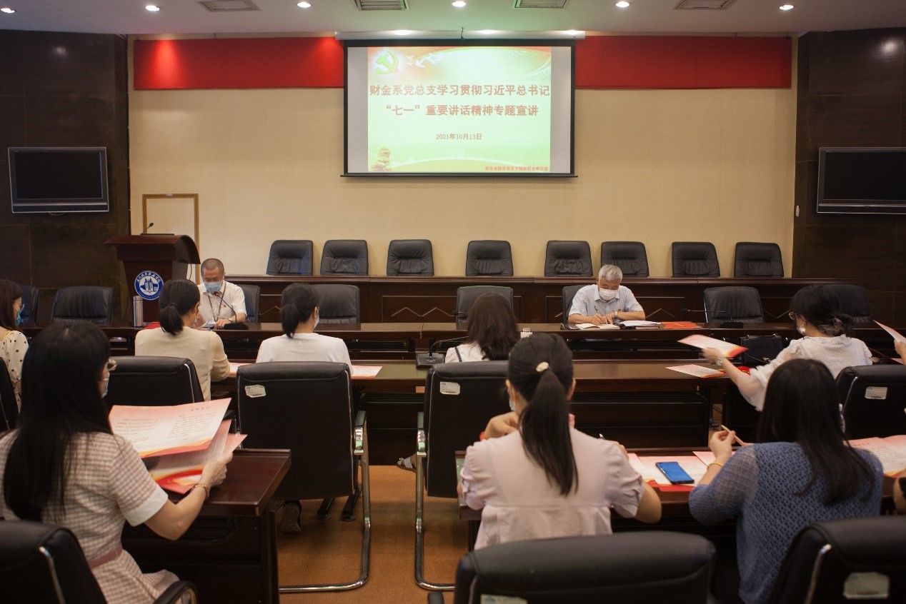 为进一步扎实推进党史学习教育,10月13日,财金系党总支特别邀请市委宣传部、市委讲师团“厦门市理论宣讲轻骑兵”成员、市教育系统“青年思政教师宣讲团”首批成员、学校马克思主义学院杨宓老师在会议中心举办学习贯彻习近平总书记“七一”重要讲话精神专题宣讲会。系党总支所属全体教职工参加学习,系党总支副书记郑江海主持会议。